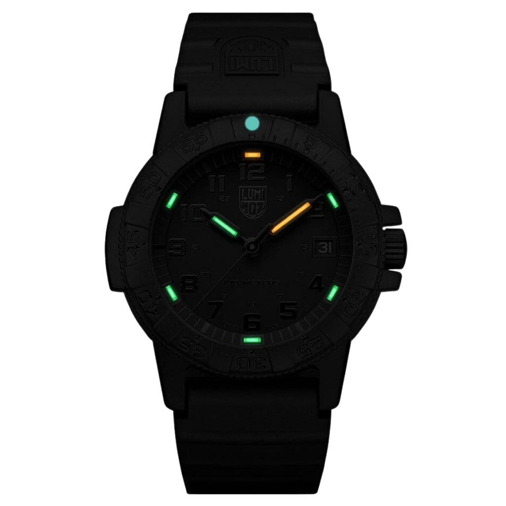 The Leatherback Sea Turtle with a black-out design features an impressive 39 mm CARBONOXTM case and water resistance up to 100 meters. This black-in-black dial is equipped with the proven Luminox Light Technology lighting system. "Always Visible", self-powered, for up to 25 years.