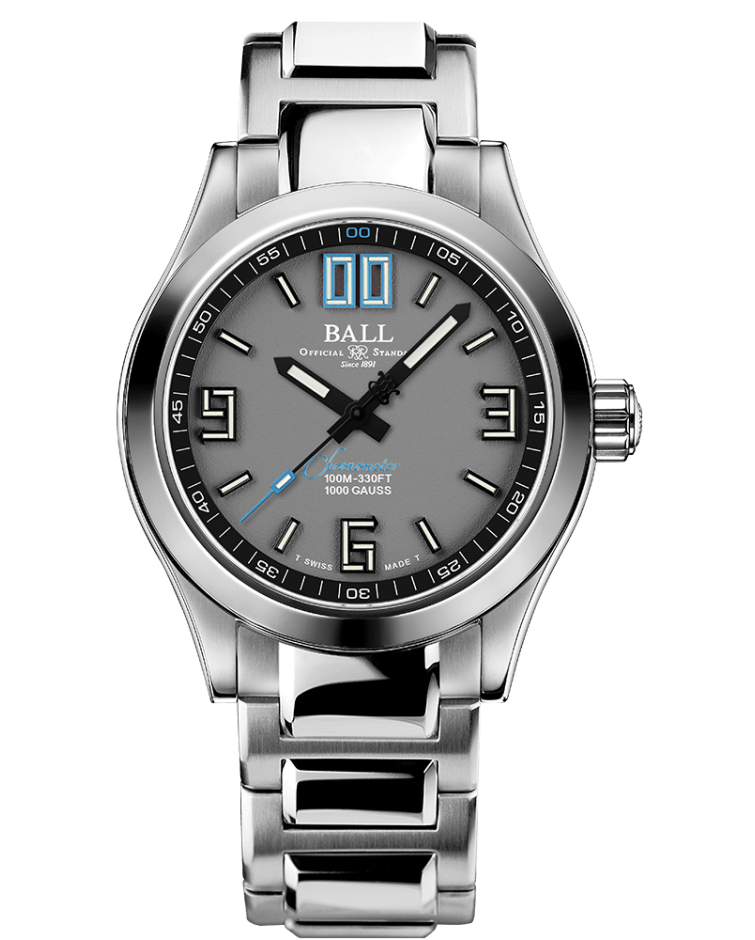 Signature of BALL, the tritium gas tubes in the 00BLU require no charge from any outside light or energy source and are 100 times brighter than conventional lume in total darkness. This state-of-the-art luminescent technology safely encapsulates H3 gas in lightweight glass microtubes. The 00BLU features blue and white tubes, colors that are particularly complex to replicate when using traditional luminous substances.