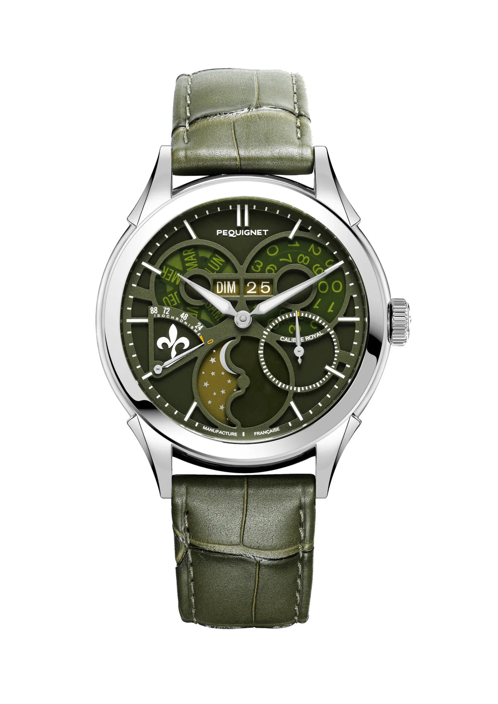The epitome of French Haute Horlogerie, the Royale Saphir Green Jade combines the nobility of the saphir dial with the beauty of the legendary triple-jump date of the Calibre Royal®: the first and only French-made mechanism to integrate its horological complications into the same mainplate.