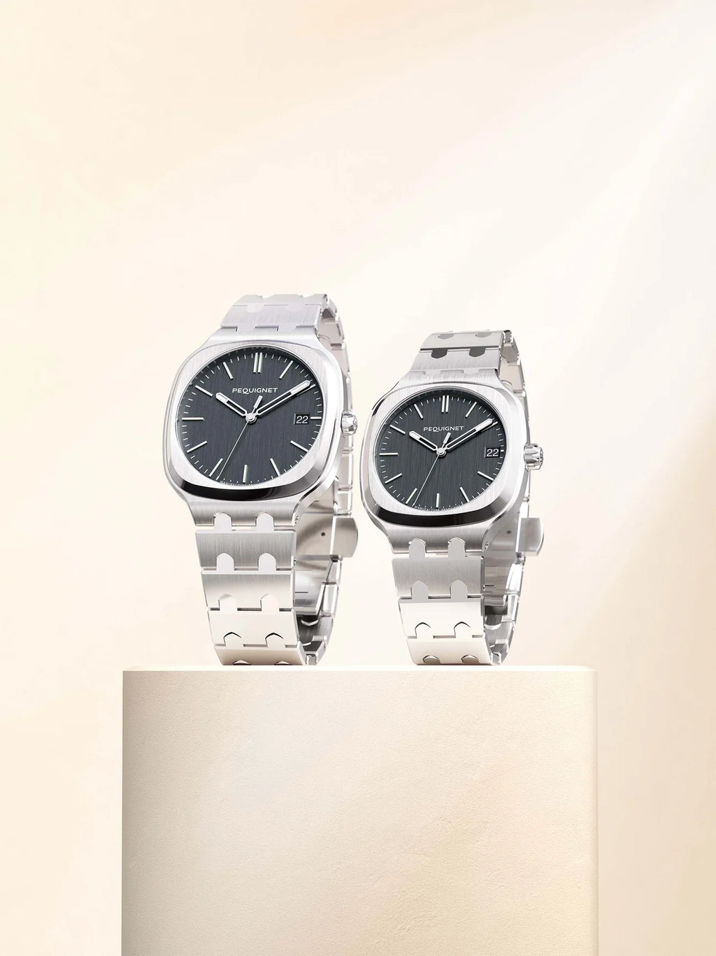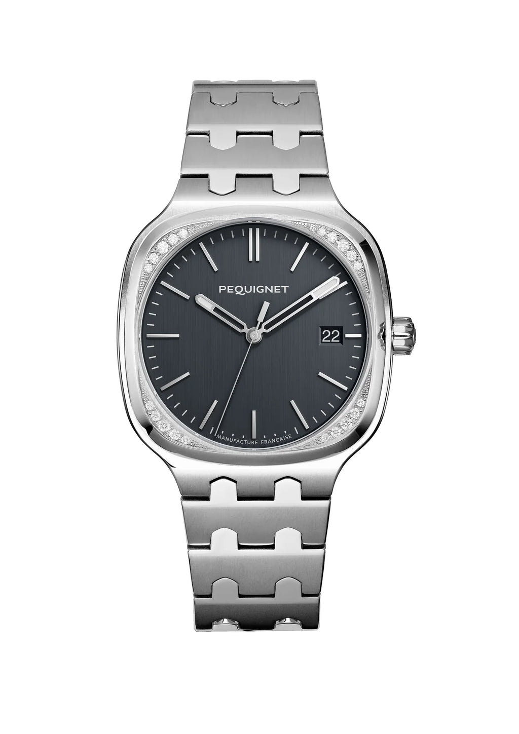 This refined version of the Concorde is adorned with a deep charcoal grey dial. With this sport-chic model, the French Manufacture Pequignet reinterprets all the strong codes of the Maison: steel, the signature link, and of course, a movement designed and assembled in France.
