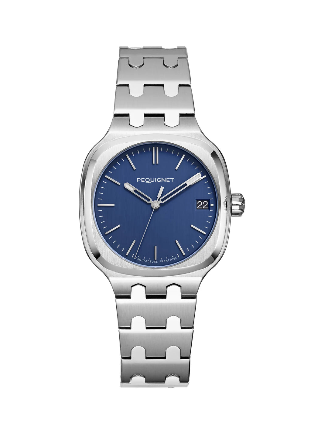 This deep blue model from the Concorde collection invites us to dive into its dial. With this sport-chic model, the French Manufacture Pequignet reinterprets all the strong codes of the Maison: steel, the signature link, and of course, a movement designed and assembled in France.