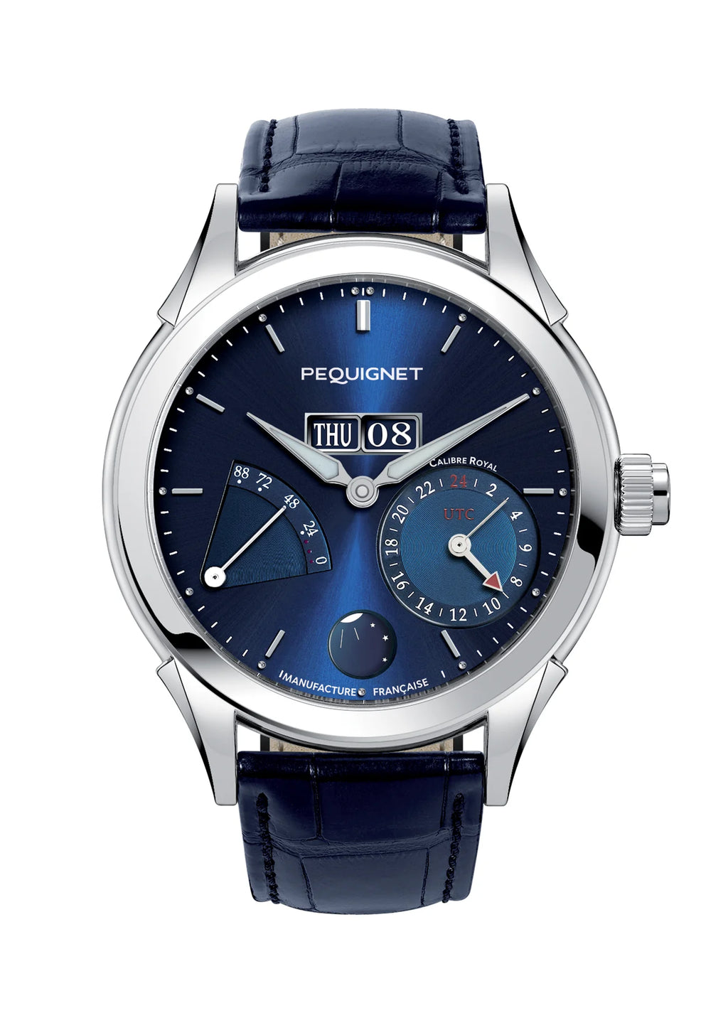 The Royale has two new complications: GMT and the day / night indicator to give a unique model: To date the Royale GMT is the only timepiece in the world with double UTC time zone and triple jumping hours in its complete calendar.